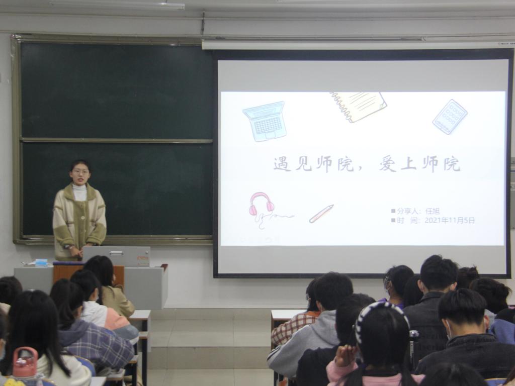任旭以“遇见师院,爱上师院”为主题,从学习和生活两方面分享自己的经验。她认为学习应该高效,有计划,合理安排时间,鼓励同学们通过参加各种有价值的竞赛锻炼自己,培养兴趣爱好。王一帆指出,大学是人生中试错成本最小的一个阶段,建议同学们积极尝试,并提出“三遍”的学习方法,要充分利用时间,合理制定学习计划,劳逸结合,强调理解记忆会达到事半功倍的效果。黄春玲结合自己经历,从思想、学习、生活、社交等方面提出建议与思考,在思想上建议同学们积极向党组织靠拢,学习相关理论知识;学习上要注重基础和专业课的学习,并强调学习英语的重要性;生活中作息规律,锻炼体魄,注意仪容仪表;社交上恰当处理宿舍、师生、同学关系等。会议过程中,同学们认真倾听分享,学姐们积极答疑解惑,营造出良好的交流氛围。