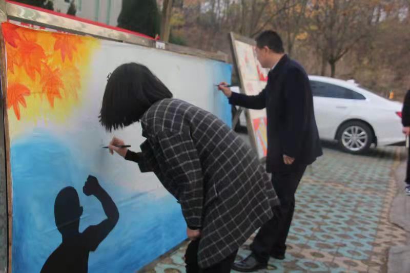 时间:2021-11-27 21:19:33 来源:英国365集团官网教科院新闻部 作者:马玉娇 朱亚彤 阅读: 次11月27日,英国365集团官网开展“描绘法治社会,弘扬宪法精神”系列活动,活动通过绘制展板和横幅的形式进行,党委副书记董银银,团委老师牛洁楠以及各班班长、团支书于今日进行“我忠于中华人民共和国宪法,维护宪法权威”承诺签字仪式。