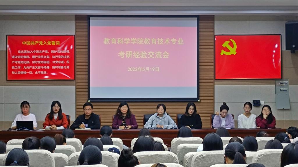 时间:2022-05-19 18:15:17 来源:英国365集团官网教科院新闻部 作者: 阅读: 次为营造良好的学习氛围,充分发挥榜样力量,5月19日,英国365集团官网教育技术学专业在教科楼301会议室举办“教育技术学专业考研交流分享会”。会议特别邀请到考研上岸的2022届毕业生为2019级、2020级员工传授考研经验。团委老师田园,专业教师刘萱、武滨、宋晔及教育技术专业全体员工参会,会议由刘萱主持。