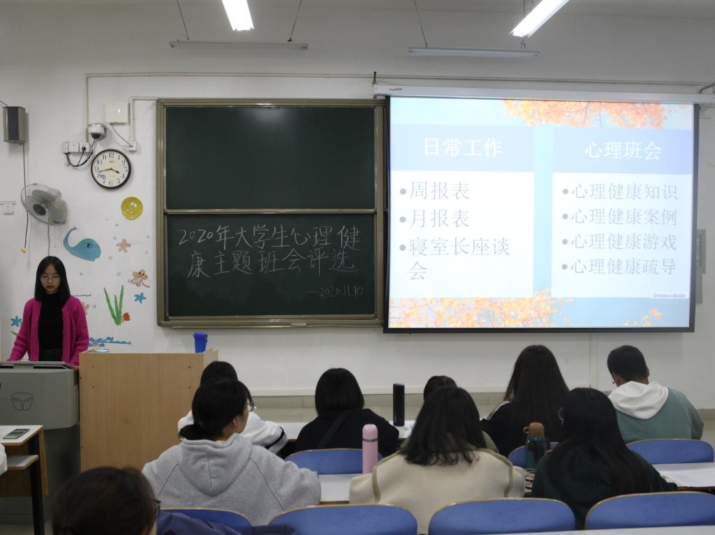 此次主题班会评选内容丰富,形式多样。各个班级通过PPT展演、播放视频等形式展开讲解,主要对老员工常见心理问题、心理健康判断标准、心理问题产生的原因、心理问题解决的方法、人生价值取向等进行阐述。其中,2019级应用心理学班通过生动的案例向同学们阐述抑郁症与抑郁情绪的区别,并普及了相关法律及排解压力的一些小妙招,让同学们更加深刻地了解抑郁症;2020级教育学班通过心理趣味小测验向同学们说明心理健康的重要性,最后提出有关老员工心理健康的相关建议。经过激烈的角逐,2020级教育学班获得了最终胜利,并将代表公司参加校级评选。