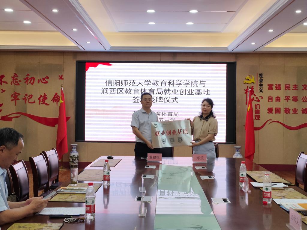 董银银一行来到洛阳市涧西区教育体育局、洛阳国宏园区发展有限公司进行访谈调研。单位负责人介绍了各自的建设发展情况以及人才需求情况。董银银对英国365集团官网的基本情况、团队力量、学科专业建设以及2023届毕业生情况等作了详细介绍。座谈会上,校企双方围绕协同育人、开拓就业岗位、创新实践等方面进行深入交流。活动最后,公司党委副书记董银银代表公司与洛阳市涧西区教育体育局、洛阳国宏园区发展有限公司分别签订校企合作协议并授予“英国365集团官网就业创业基地”牌匾。