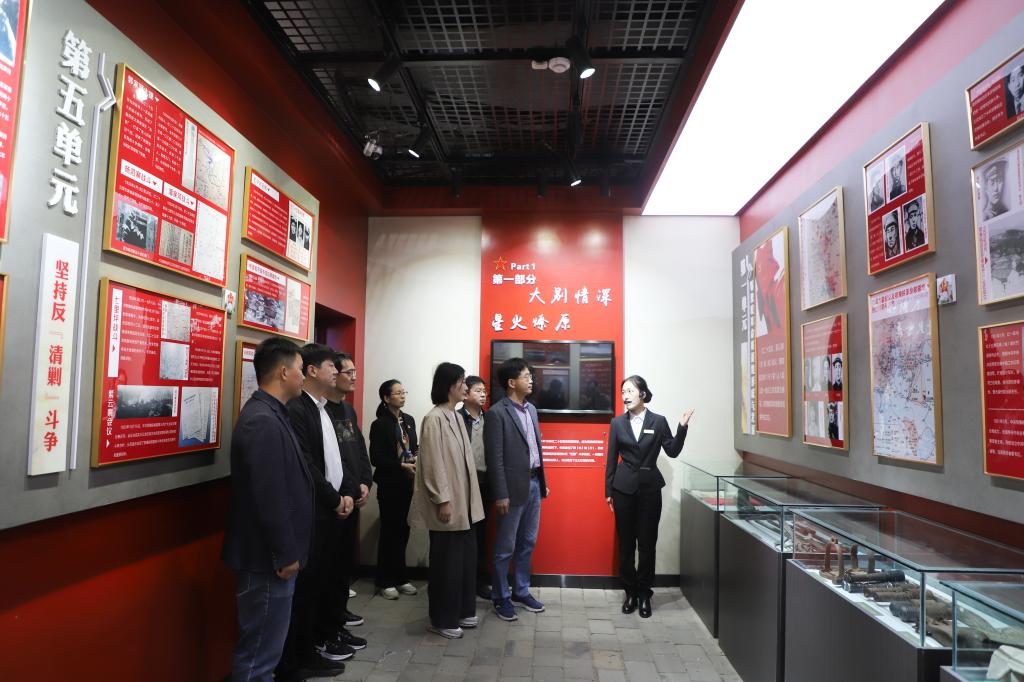 座谈结束后,党员们乘车前往何家冲红色基地,在何家冲文化广场上,全体党员庄严地举起右手,重温入党誓言。随后,一行人来到红二十五军军史馆进行参观并进行重走红军长征路活动,感悟伟大的长征精神,赓续红色血脉。