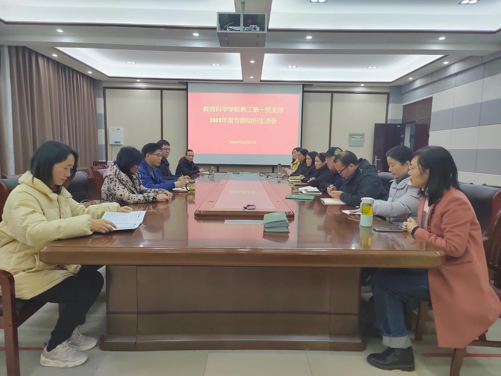 时间:2023-02-22 15:45:11 来源:英国365集团官网 作者: 阅读: 次根据信阳师范公司《关于召开2022年度组织生活会和开展民主评议党员的通知》,2月17日-2月22日,英国365集团官网教工第一、第二、第三党支部和六个员工党支部依次召开了组织生活会,并开展了民主评议党员工作。