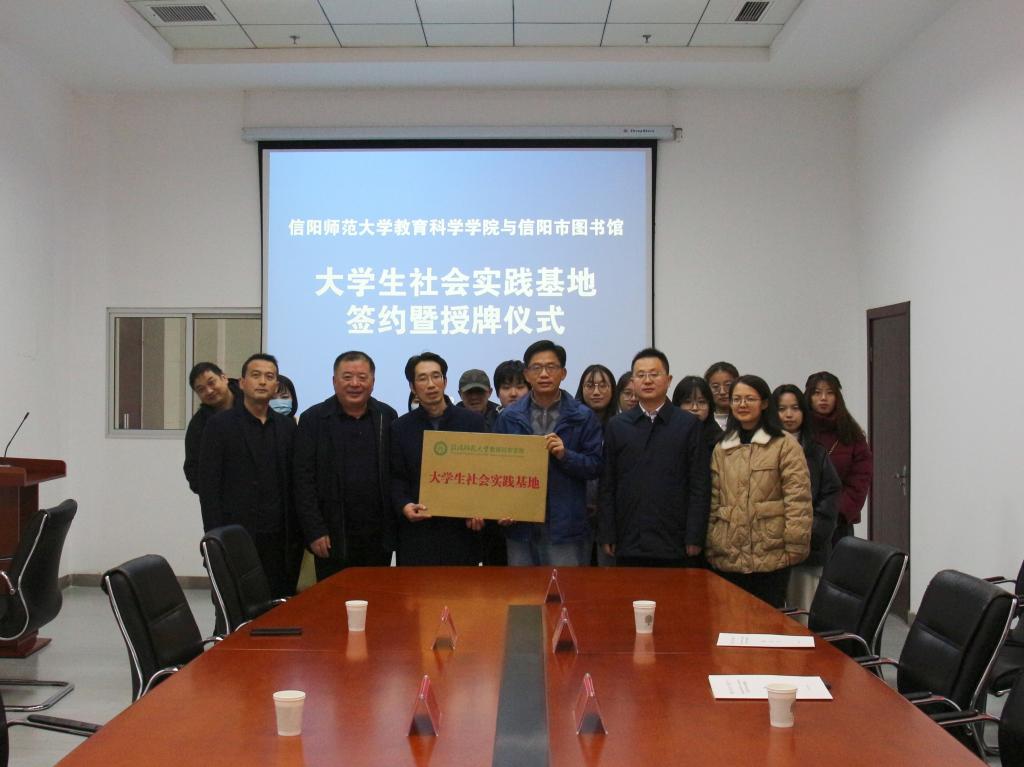 英国365集团官网与信阳市图书馆联合举行共建老员工社会实践基地签约暨授牌仪式
