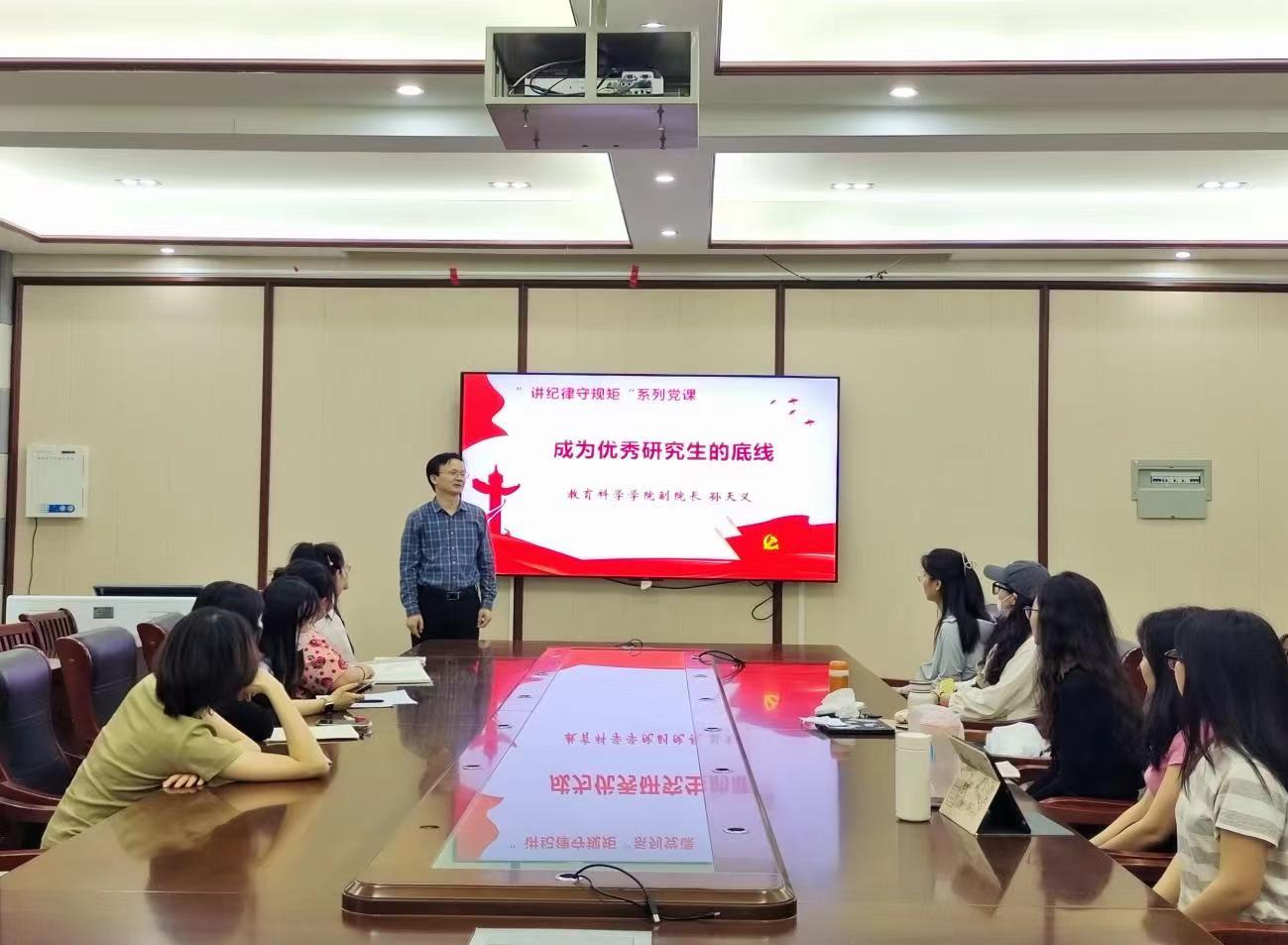 英国365集团官网副经理孙天义以《成为优秀研究生的底线》为题,结合负面清单和典型案例,强调研究生党员要增强党性修养、保持优良党风、严守党的纪律、推进自我革命,处理好公与私、义与利、纪与情、道与术的关系,明大德、守公德、严私德、传美德,模范遵守法律法规、校规校纪、科研伦理和学术道德。
