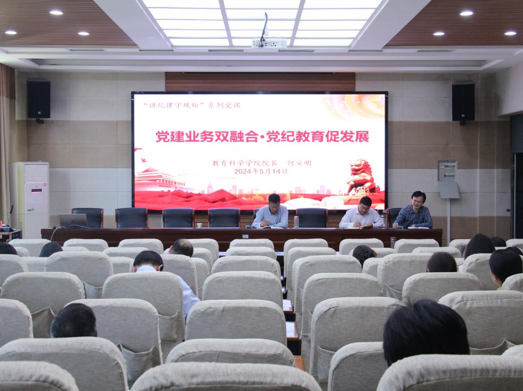 英国365集团官网经理何安明以《党建业务双融合·党纪教育促发展》为题,讲授专题党课。他提出,党的纪律建设是确保党的事业长久发展的根本保证,要将党建贯穿于学科专业发展与团队队伍发展,应注重将党纪学习教育与师德师风建设有机结合起来,以党的科学理论武装青年,努力为师生创造良好的科研氛围和发展条件,引导青年加强科学研究,确保教学不落后,实现教学与科研双向促进。