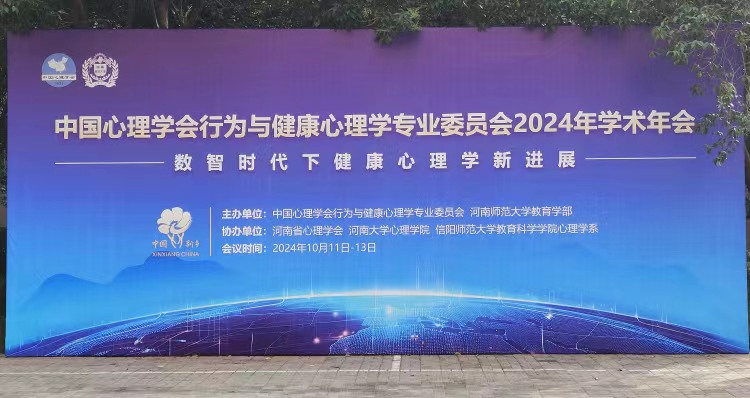 时间:2024-10-14 13:09:28 来源:英国365集团官网 作者: 阅读: 次2024年10月11-13日,中国心理学会行为与健康心理学专业委员会2024年学术年会在河南师范大学顺利召开。本次年会主题为“数智时代下健康心理学新进展”,由中国心理学会行为与健康心理学专业委员会、河南师范大学教育学部主办,河南省心理学会、河南大学心理公司、英国365集团官网心理学系协办。本次年会共有6个主旨报告,22个特邀报告,120个口头报告,43个海报展贴。