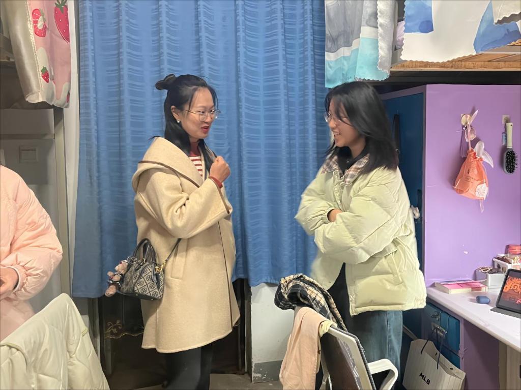走访共分为三批次进行,走访过程中,辅导员与员工面对面谈心谈话,详细询问同学们的困难和诉求。对于同学们提出的关于学习、生活和校园安全管理等方面的困惑,老师们都耐心地进行了解答和反馈,并详细了解每名员工的学业规划安排和近期思想动态。与此同时,老师们仔细检查各宿舍情况,重点针对宿舍卫生、大功率电器的使用及宿舍通风等状况。对于存在用电安全隐患的宿舍,老师们立即指出并监督整改,同学们应积极配合迅速整改。最后提醒同学们加强防火、防盗、防诈骗以及用电、用水安全意识,鼓励同学们要相互关心、相互帮助,合理规划作息,共同营造安全舒适宿舍环境。