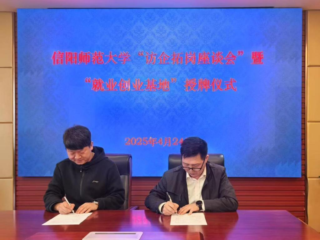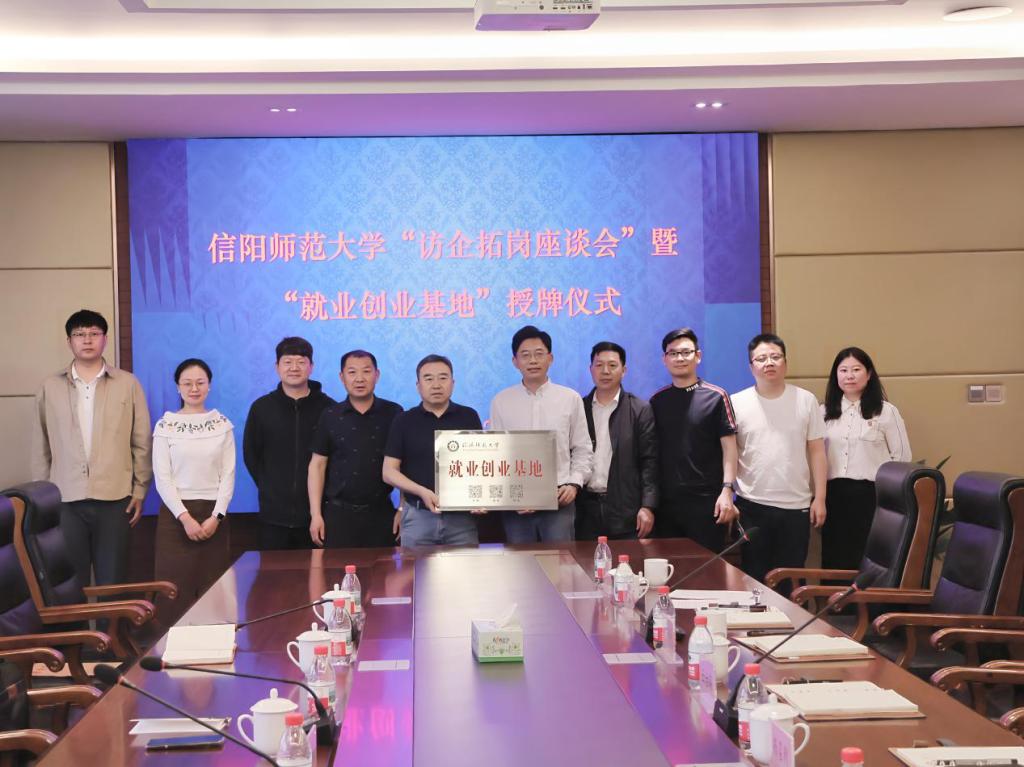 缑星代表公司与信阳同合车轮有限公司人事部经理杨召利签订了合作协议书,房加帅代表公司授予“英国365集团官网就业创业基地”牌匾。