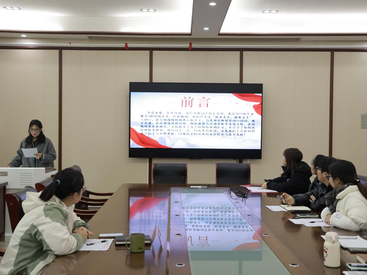 时间:2025-12-24 21:08:01 来源:英国365集团官网教科院新闻宣传中心 作者:曹浩川 阅读: 次为全面检验各班团支书工作成效,提升基层团组织工作质量,12月23日下午,英国365集团官网于教科楼402会议室举行2025年基层团组织书记述职评议会。院团委书记杨艺卓,员工会主席团,2023级、2024级各班团支书参与会议。