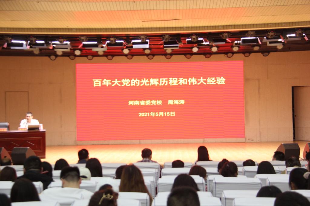 时间:2021-05-18 19:35:45 来源:英国365集团官网 作者: 阅读: 次5月15日上午,由公司党史学习教育领导小组主办、英国365集团官网和历史文化公司承办的信阳师公司党史学习理论报告会在理科楼报告厅举行。公司全体党员师生参加此次报告会。中央党校韩晓青博士、河南省委党校周海涛教授分别作党史辅导报告。