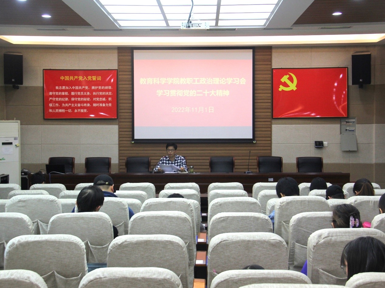 公司党委书记房加帅以“学习二十大精神,争做四有好老师”为主题作了专题辅导报告。房加帅结合教科院教职工思想工作实际,学习传达了中共信阳师范公司委员会《关于深入学习宣传贯彻党的二十大精神》的通知,详细解读了《中国共产党第二十次全国代表大会关于十九届中央委员会报告的决议》,并对下一阶段的学习宣传工作进行了安排部署。他要求全体教职工要把学习贯彻党的二十大精神作为当前和今后一个时期的首要和重大政治任务,深刻领悟“两个确立”的决定性意义,增强“四个意识”、坚定“四个自信”、做到“两个维护”,迅速把思想和行动统一到党的二十大精神上来;各党支部、各共产党员先锋号和各学系都要深入学习领会,全面准确把握党的二十大的精神实质和核心要义,结合自身思想建设、育人实践与科学研究实际,深刻领悟大会提出的新思想新观点新论断和作出的重大工作部署,把二十大精神化作踔厉奋发、勇毅前行的强大动力;要采取集中学习、座谈会、研讨会、课程思政交流会等多种形式,推动党的二十大精神入脑入心、走深走实,让二十大精神内化于心,外化于行,指导学习、生活的方方面面,推动各项事业再上新台阶。