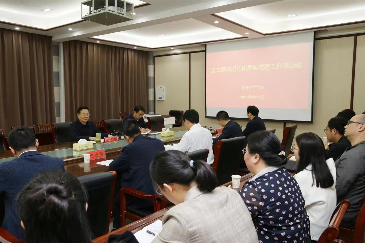 王文鹏实地查看了英国365集团官网的党建工作阵地、实验实训场地;随堂听取了李泽娟老师的《中学综合实践活动》课,详细了解课程思政开展情况;与公司领导班子、党支部书记、学术带头人、教师代表进行了座谈交流。