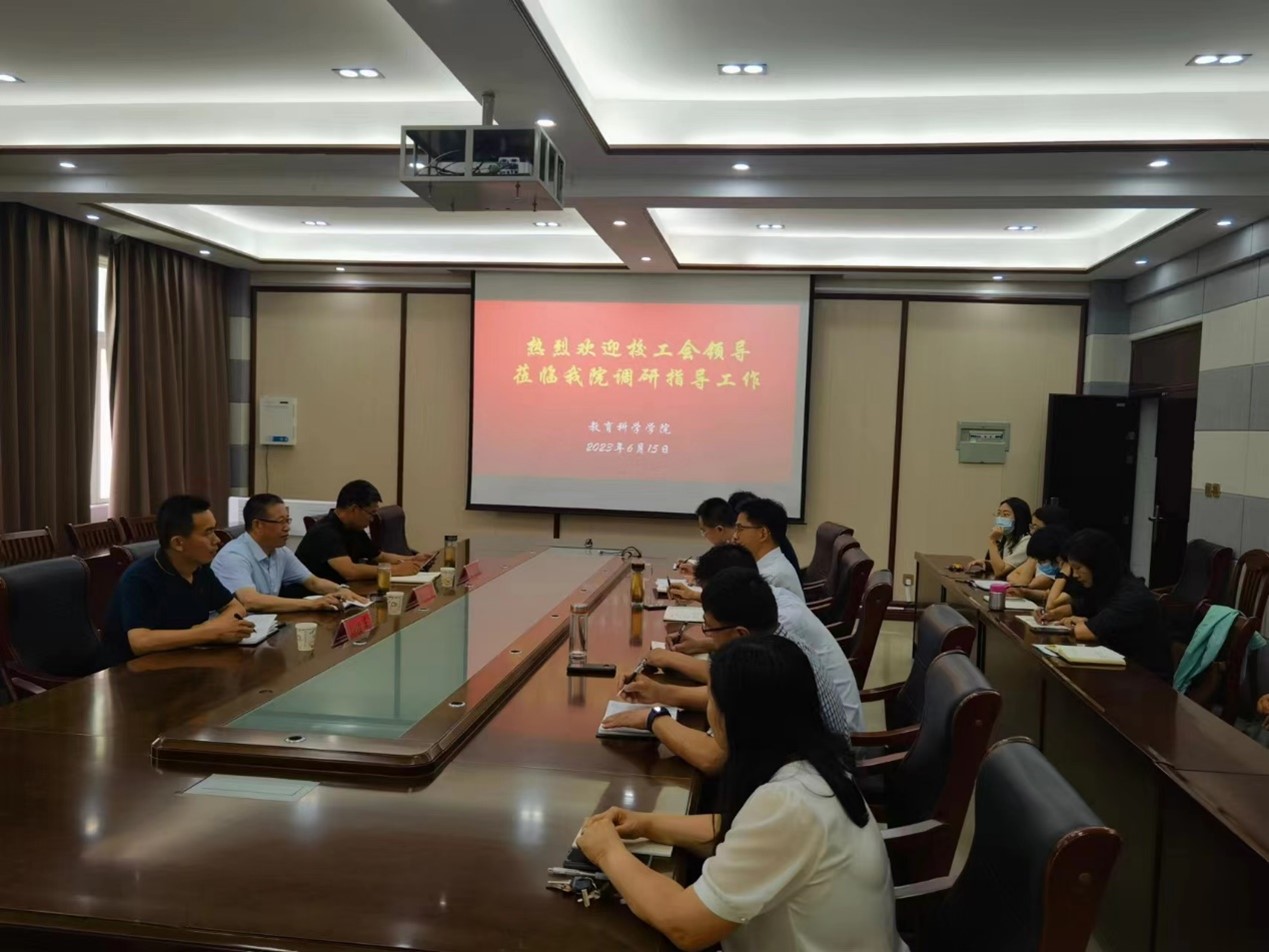 时间:2023-06-16 11:54:22 来源:英国365集团官网教科院新闻宣传中心 作者:刘至涵 罗梦瑶 阅读: 次6月15日上午,信阳师范公司工会副主席张起军,工会办公室主任李孝民一行到访公司开展调研指导工作,公司党委书记房加帅,经理何安明,党委副书记董银银,副经理郭勇,工会会员和教师代表参加会议。会议于教科楼402会议室召开。
