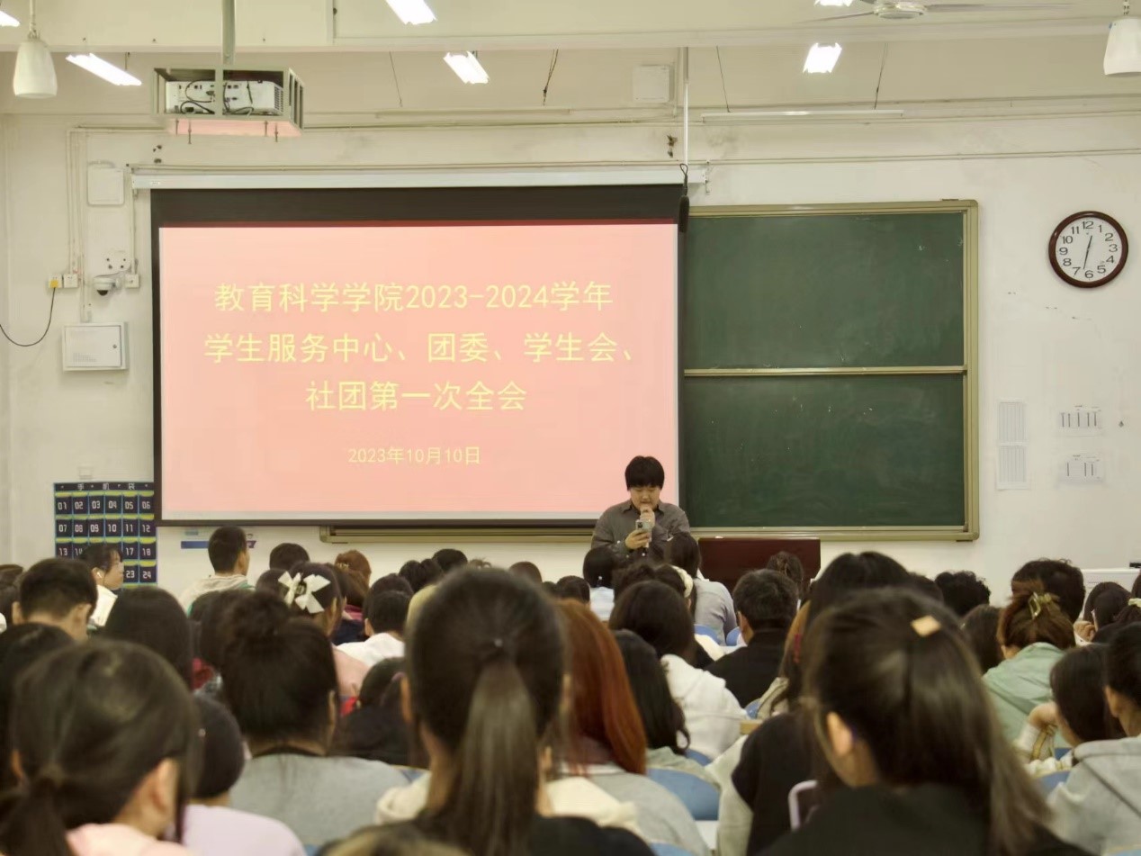 时间:2023-10-10 19:40:18 来源:英国365集团官网 作者: 阅读: 次10月10日,英国365集团官网于教科楼108教室举行2023-2024学年员工服务中心、团委、员工会、社团第一次全会。英国365集团官网主席团成员,员工工作中心、团委、员工会各部门部长及干事,社团各社长、团支书等参加此次会议。会议由社联主席马韬雯主持。