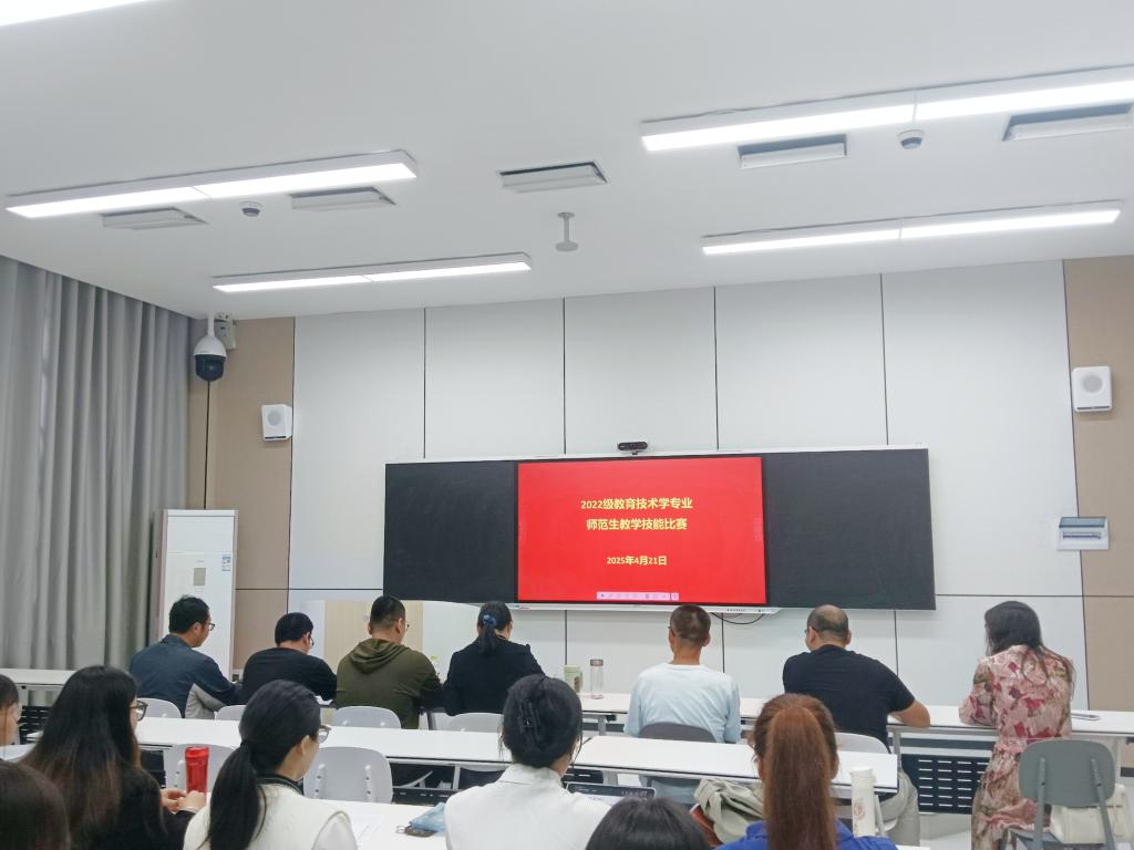 时间:2025-04-21 17:17:12 来源:英国365集团官网 作者: 阅读: 次为检验师范生的教学技能和专业素养,提升教学设计、教学实施、教学评价等能力,促进师范生对教育技术学理论知识的理解和实践应用,提高运用现代教育技术解决实际教学问题的能力,2025年4月21日教育技术学系组织2022级教育技术学学专业师范生开展教学技能比赛,16位同学参加比赛。系主任崔宇路,以及刘萱、武滨、宋晔、刘琦、张立春、金云波老师参加比赛评审。