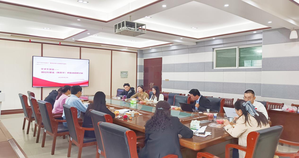 时间:2025-09-26 15:21:19 来源:英国365集团官网 作者: 阅读: 次2025年9月24日中午,英国365集团官网“共产党先锋号”教育管理与政策研究团队在教科楼402会议室举行学术午餐会,聚焦2026年度国家社科基金(教育学)项目选题进行专题研讨。本次活动是团队践行“有组织科研”理念、系统谋划高水平项目申报的重要环节,由团队负责人周娜博士主持,公司党委书记房加帅出席会议。